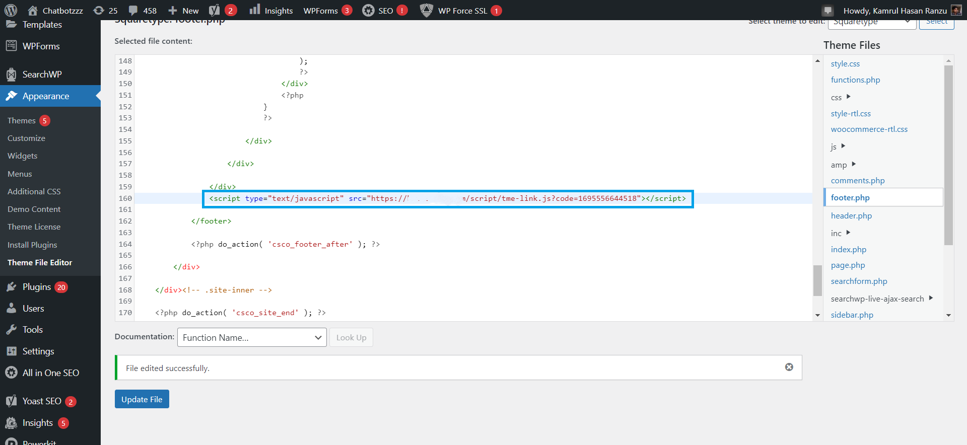 - Go to `Appearance` > `Theme File Editor.`